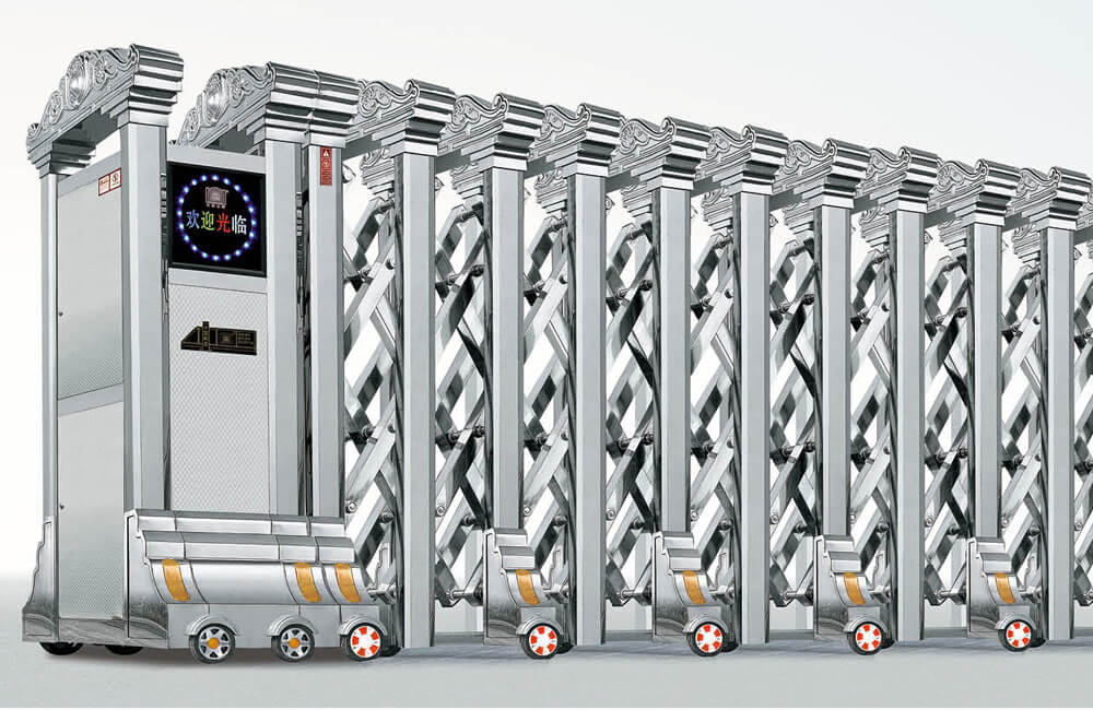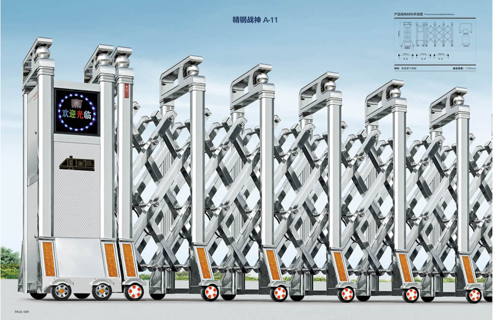 動伸縮門主要有伸縮門體、機(jī)頭、控制器三部分組成。